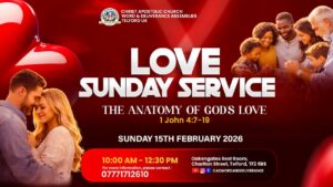 You are warmly invited to our Love Sunday Service at Christ Apostolic Church, Word & Deliverance Assemblies, Telford UK.